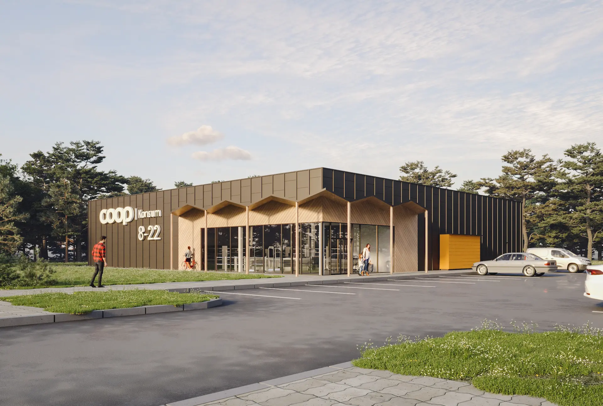 Häädemeeste COOPi kauplus on moodne, kuid maalähedane, sobitudes ühtlaselt sõidutee äärde ning männimetsa alla. Uus hoone võimaldab mugavamat kasutust kohalikele elanikele ning tagab suurema külastajate mahutavuse rannahooajal.